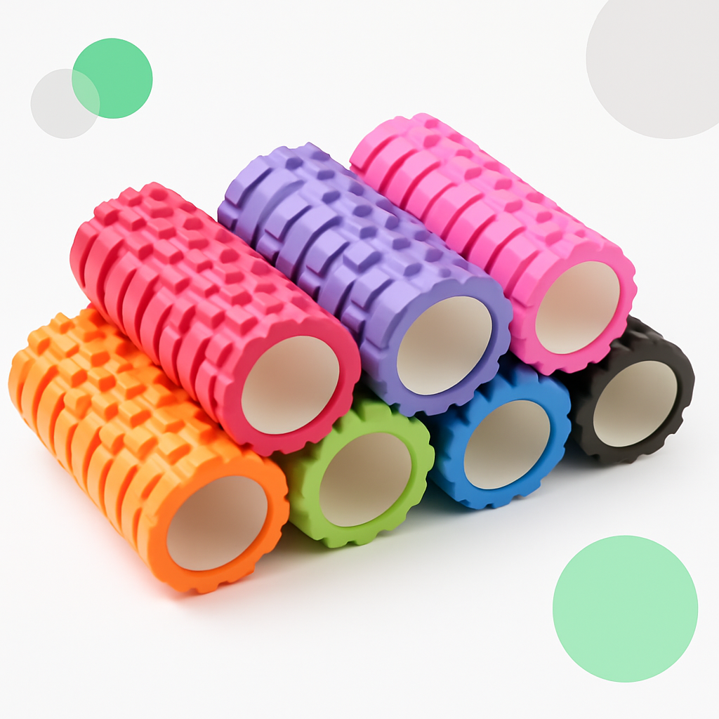 Поверхня з EVA-піни та внутрішня трубка з ПВХ забезпечують міцність і довговічність ⚡. Рельєфна структура дозволяє робити глибокий самомасаж, покращуючи кровообіг і лімфодренаж.